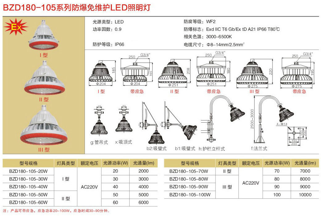 產(chǎn)品中心 LED免維護(hù)防爆燈具系列 免維護(hù)LED防爆照明燈BZD180-105 Ⅰ型