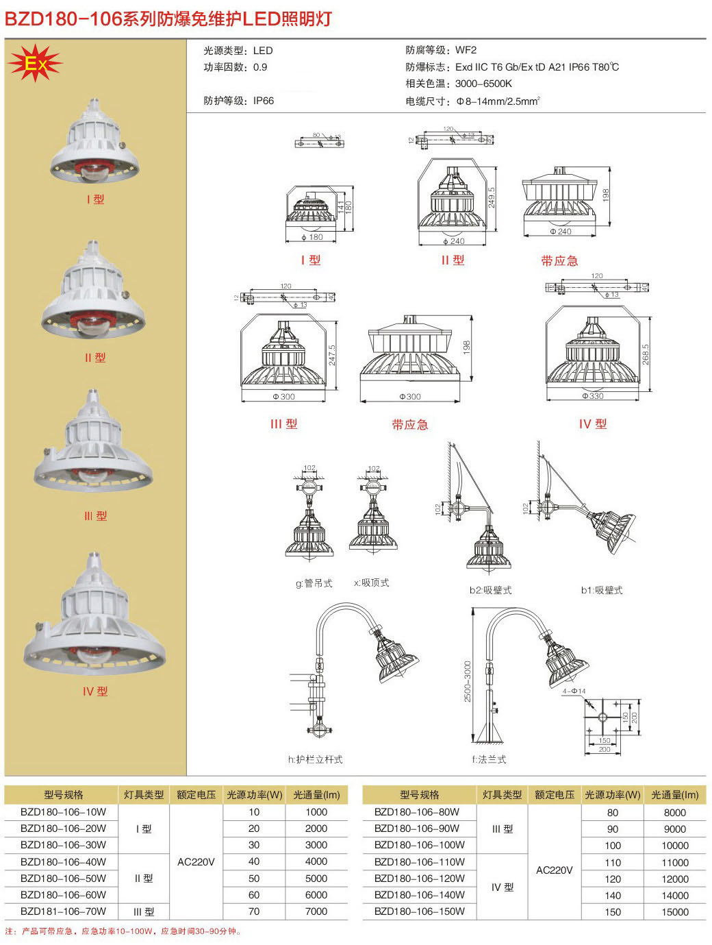 產(chǎn)品中心 LED免維護(hù)防爆燈具系列 免維護(hù)LED防爆照明燈BZD180-106 Ⅰ型