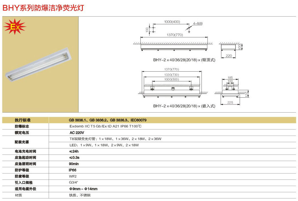 產(chǎn)品中心 防爆熒光燈具系列 BHY系列防爆潔凈熒光燈