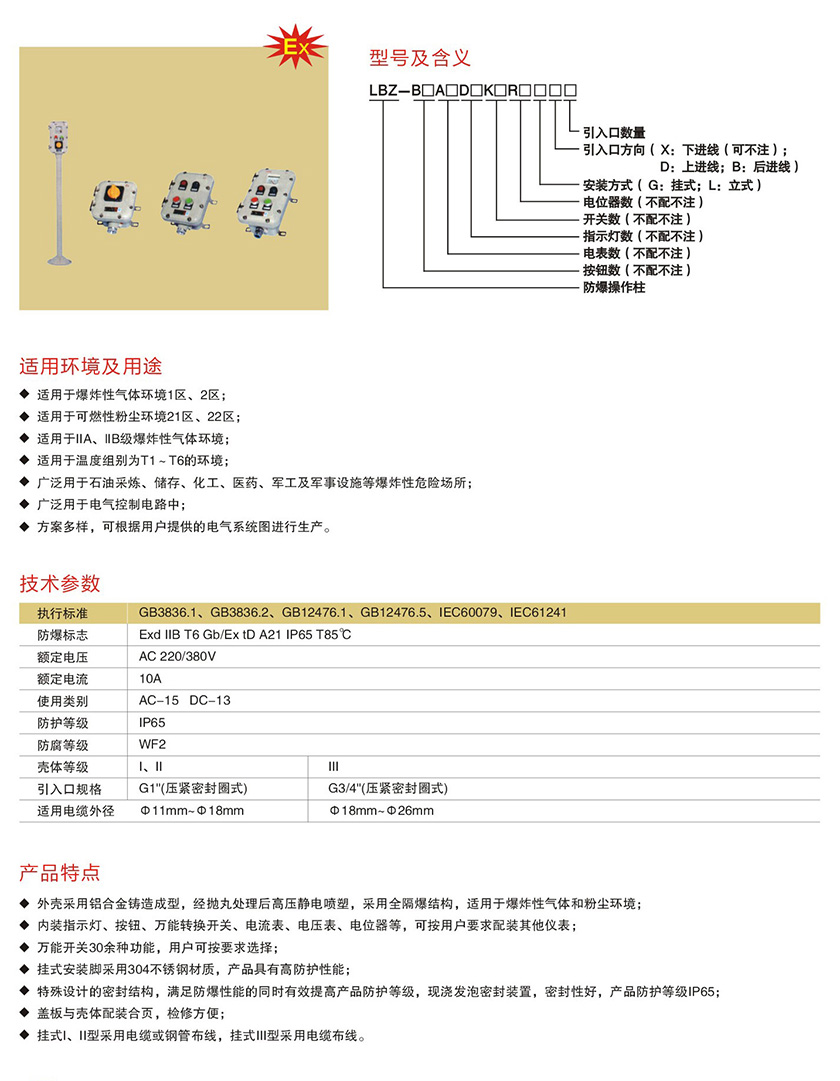 產(chǎn)品中心 防爆配電箱、電器管件類 LBZ系列防爆操作柱(IIB、IIC)