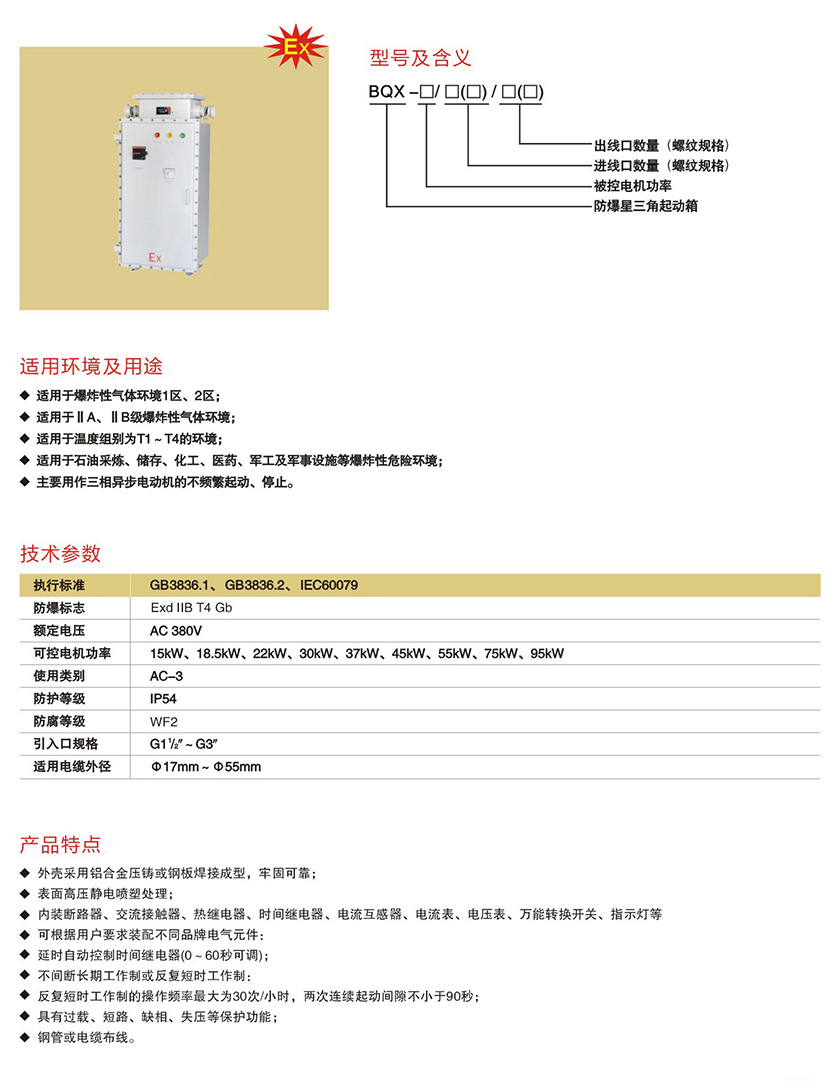 產(chǎn)品中心 防爆配電箱、電器管件類 BQX系列防爆星三角起動箱(IIB、IIC)