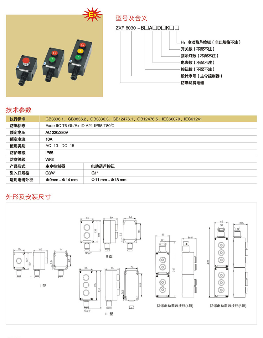 產(chǎn)品中心 防爆配電箱、電器管件類 ZXF8030系列防爆防腐主令控制器(IIB、IIC)