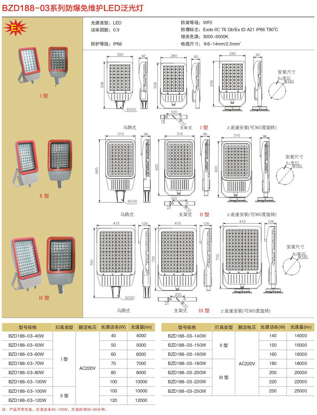 產(chǎn)品中心 LED免維護防爆燈具系列 免維護LED防爆泛光燈BZD188-03 Ⅰ型