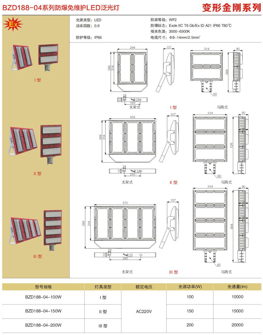 產(chǎn)品中心 LED免維護(hù)防爆燈具系列 免維護(hù)LED防爆泛光燈BZD188-04 Ⅰ型